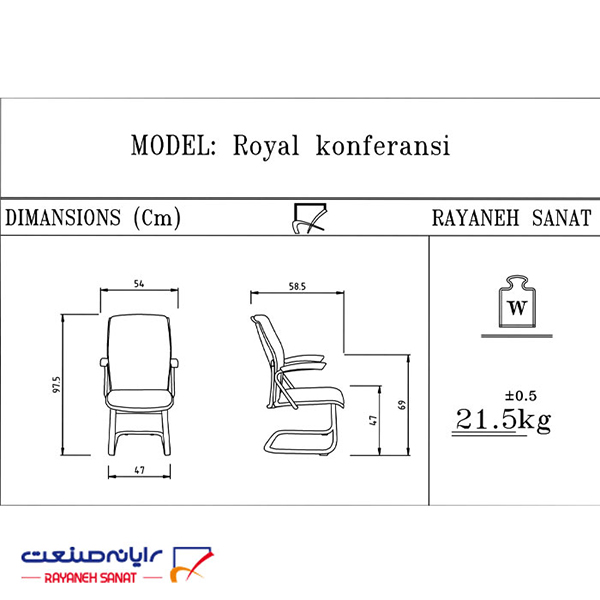 ویژگیها طراحی ارگونومیک مطابق اصول استاندارد نشیمن راحت با فوم سرد قالبی که تغییر شکل نمیدهد پایه فلزی با آبکاری کروم برای دوام و ظاهر شیک دستههای ثابت با روکش نرم برای راحتی دستها قابلیت انتخاب روکش از چرم یا پارچه ظاهر ساده و هماهنگ با دکوراسیون اداری