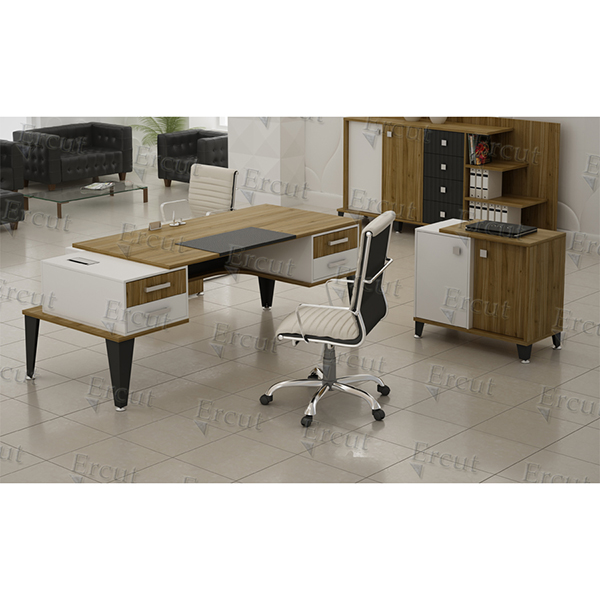 میز مدیریت صفحه ی میز ۲۵میل -پنل جلو ۳d با روکش pvc مشکی - کلیه اتصالات مینی فیکس الیت همراه با بسته بندی جهت حمل -پایه های فلزی ورق ۳ میل با رنگ الکترواستاتیک به همراه کفی از جنس ABS با قابلیت ریگلاژ تا ارتفاع ۳ سانتی متر-دارای جای داکت با درپوش فلزی برای عبور سیم تلفن،برق و شبکه-
