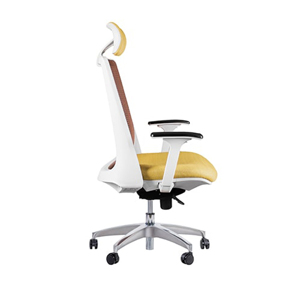ویژگیهای طراحی و ارگونومی- طراحی ارگونومیک با مکانیزم سینکرون برای تنظیم راحتتر زاویه و ارتفاع - پشتی مش ضد تعریق با قابلیت تنظیم انحنای کمر - دستههای تنظیمی برای هماهنگی با میز و وضعیت بدن - پشتسری برای راحتی گردن در استفاده طولانیمدت - پایه آلومینیومی مقاوم با چرخهای PU روان و بیصدا