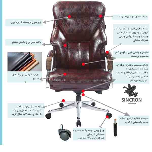 مشخصات فنی صندلی مدیریتی لوکس آریکا مدل M 930 EW