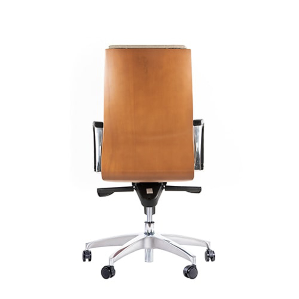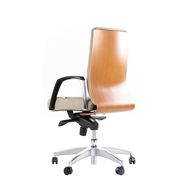 پشتی این صندلی از چوب راش سه‌لایه ساخته شده و در سه رنگ مختلف (ماهاگونی، خودرنگ و فندوقی) عرضه می‌شود. این پشتی قابلیت تغییر زاویه دارد و طراحی خاص آن باعث می‌شود فشار کمر کاهش یابد.