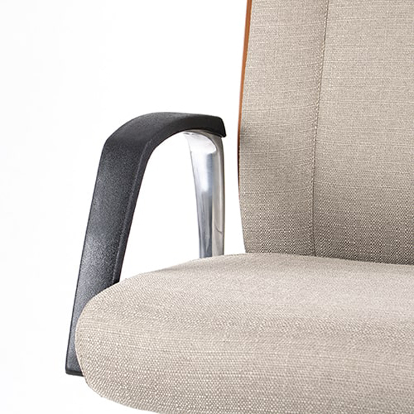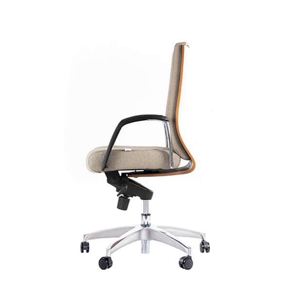 این مدل قابلیت سفارش‌گذاری با روکش‌های چرمی یا پارچه‌ای دارد. همچنین امکان تغییر رنگ چوب پشتی وجود دارد تا صندلی با دکوراسیون محیط کاری هماهنگ شود.