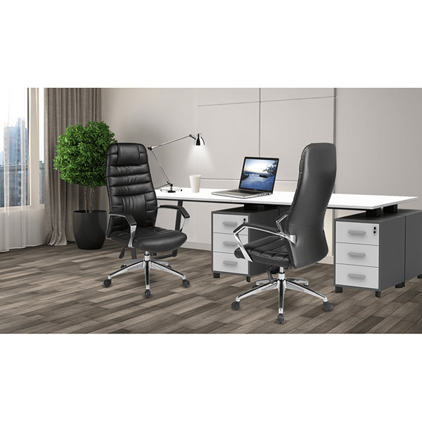 روکش و ظاهر این مدل قابلیت سفارشگذاری با روکش چرمی یا پارچهای دارد و در رنگهای متنوع عرضه میشود. دوخت لمسهکاری، ظاهر رسمی و مدیریتی صندلی را تقویت میکند.