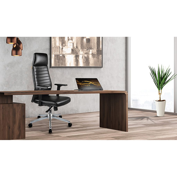 روکش و ظاهر این مدل قابلیت سفارشگذاری با روکش چرمی یا پارچهای دارد و در رنگهای متنوع عرضه میشود. دوخت لمسهکاری و طراحی کلاسیک، ظاهر رسمی و مدیریتی صندلی را تقویت میکند.