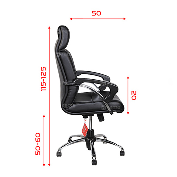 ابعاد: ارتفاع نشیمن تا زمین 50-58 سانتی‌متر / ارتفاع کل 120-128 سانتی‌متر / عرض 65 سانتی‌متر