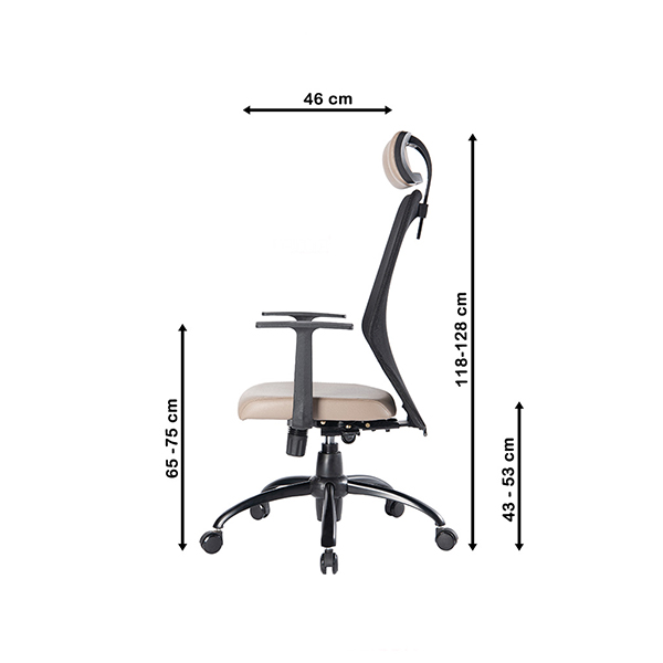 ابعاد: ارتفاع نشیمن تا زمین 50-58 سانتیمتر / ارتفاع کل 120-128 سانتیمتر / عرض 65 سانتیمتر