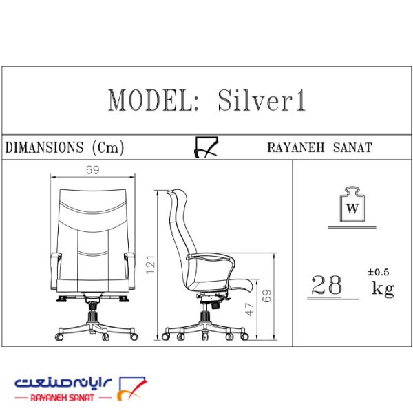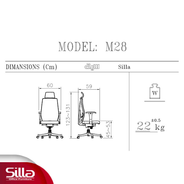 مشخصات فنی صندلی مدیریتی سیلا مدل M28i